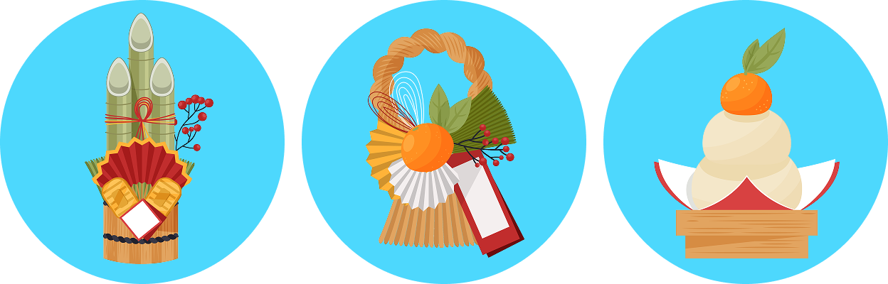 - Shimekazari: vòng rơm treo cửa, được xem là ranh giới thiêng liêng giữa con người và thần linh, giúp xua đuổi điều không may