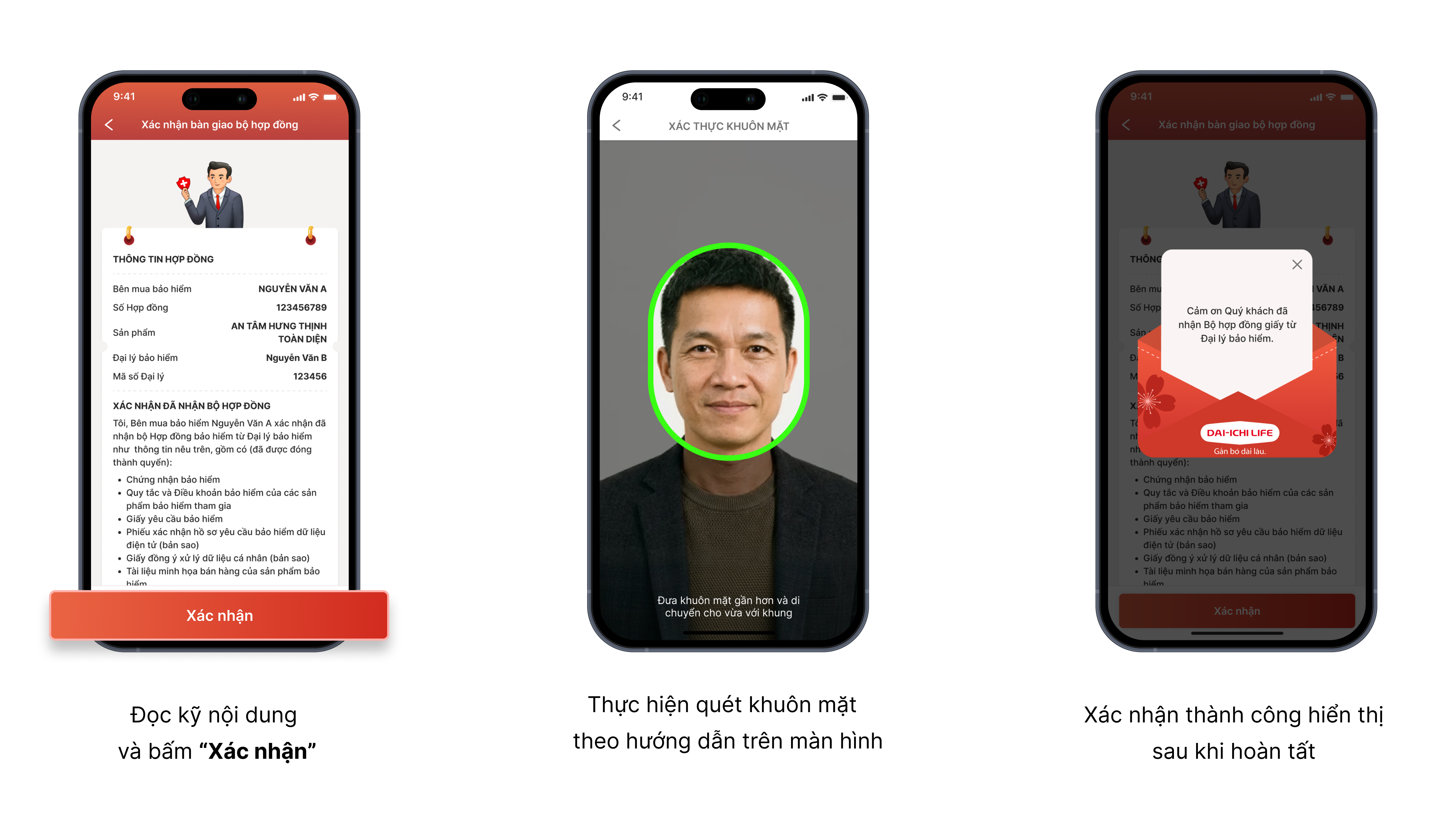- Để đảm bảo quyền lợi của mình, Quý khách vui lòng chỉ thực hiện xác nhận sau khi đã nhận đầy đủ bộ Hợp đồng giấy từ Đại lý bảo hiểm.