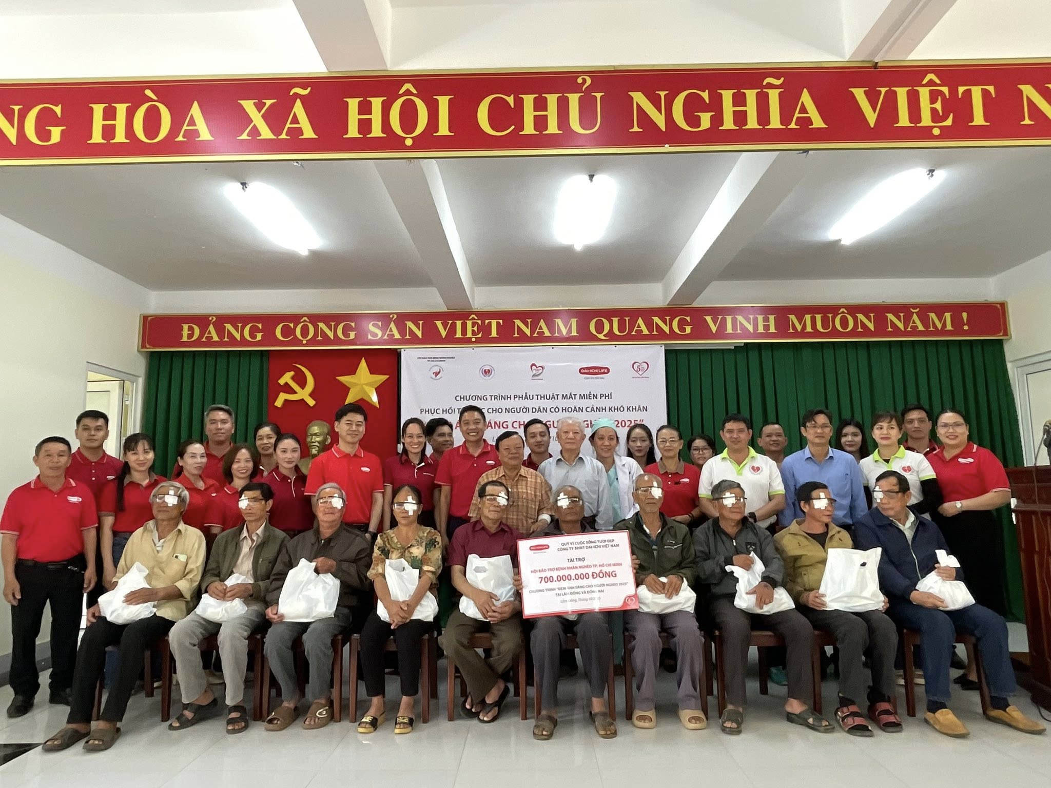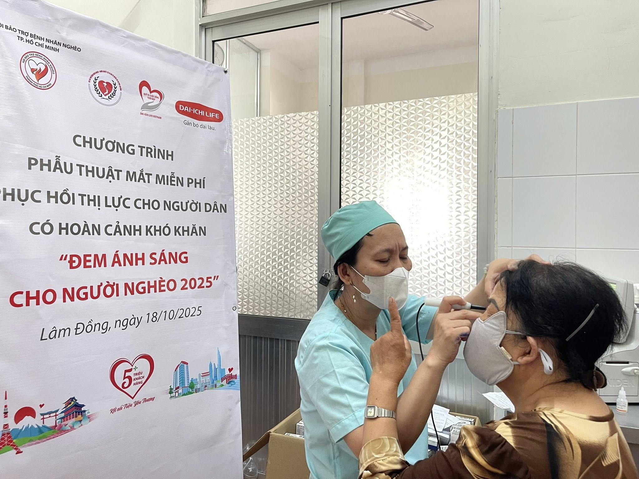 Vào ngày 18/10/2025, Quỹ Vì cuộc sống tươi đẹp của Dai-ichi Life Việt Nam đã phối hợp với Hội Bảo trợ Bệnh nhân nghèo TP. HCM, Hội Bảo trợ Bệnh nhân nghèo – Người tàn tật & Bảo vệ Quyền trẻ em Tỉnh Lâm Đồng, Trung tâm Y tế Khu vực Lâm Hà, triển khai chương trình phẫu thuật mắt từ thiện cho hơn 150 bệnh nhân nghèo bị đục thủy tinh thể trên địa bàn Tỉnh Lâm Đồng.